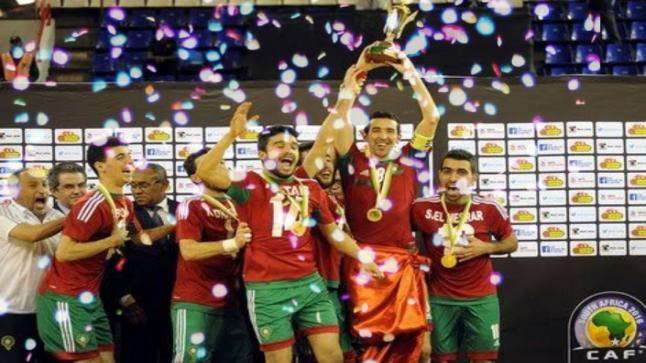 توج المنتخب المغربي لكرة القدم داخل القاعة بلقب كأس إفريقيا للعبة للمرة الثانية على التوالي، بعد تغلبه مساء اليوم الجمعة، على المنتخب المصري بخماسية نظيفة في مباراة النهائي